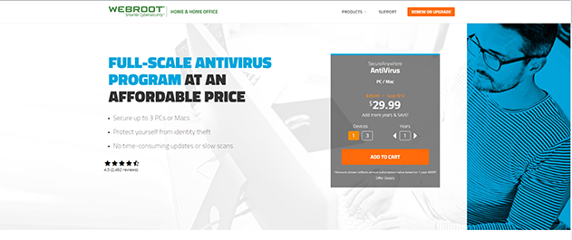 For a relatively bare-bones security suite, Webroot SecureAnywhere AntiVirus is offered for a very reasonable price. While you can’t use your Webroot subscription on mobile devices, this program is available for both Windows and Mac, and you can purchase a three-license version of Webroot SecureAnywhere AntiVirus for $49.99 MSRP.